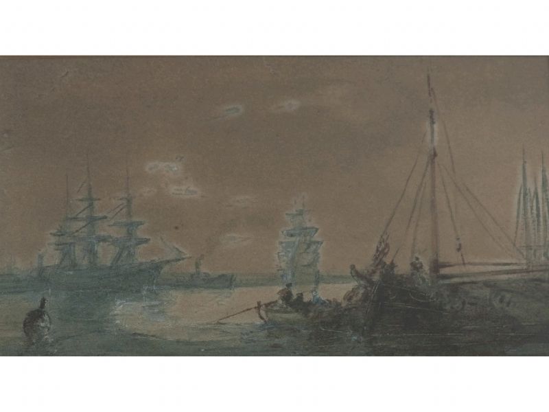 SHIPPING BY MOONLIGHT, A PAIR OF WATERCOLOURS