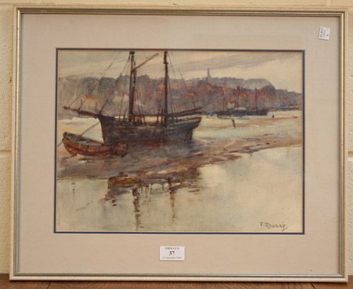 | Coastal Landscape with Beached Boats, the Town in the distance, possibly Whitby | |