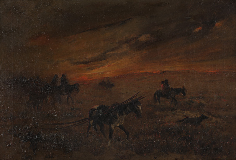 | 'Moving Camp'', Native American tribe on the move at sunset | |