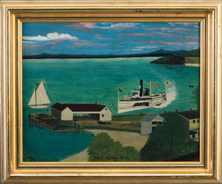 | FOLK PAINTING OF PORT KENT, NEW YORK, WITH THE PASSENGER STEAMER "VERMONT" ON LAKE CHAMPLAIN | |