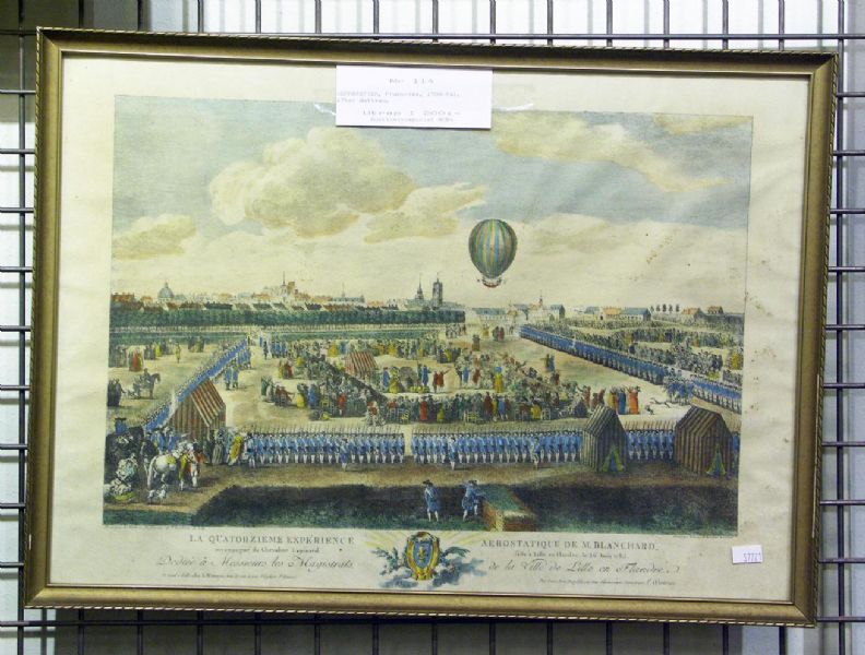 Blanchards luftballonguppstigning, Lille, 1785. Färglagd