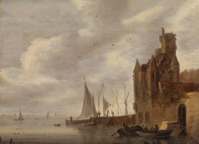 A fisherman before a castle on the banks of a river
