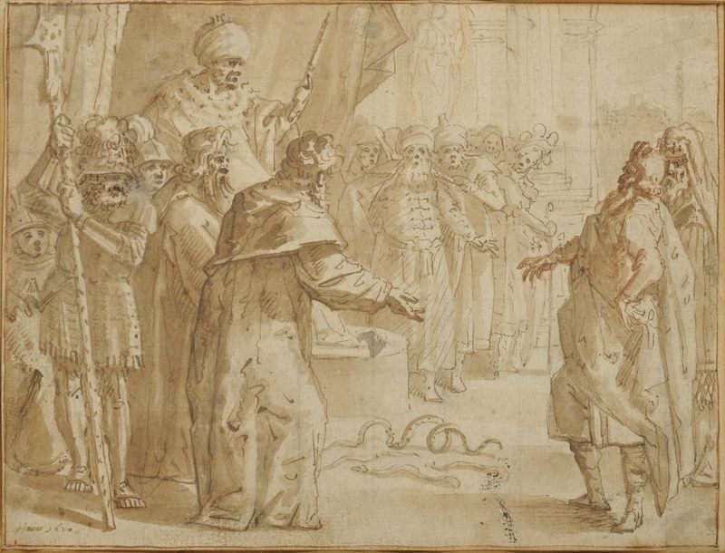 Mozes en Aäron voor de Farao (Exodus 7:8-13)