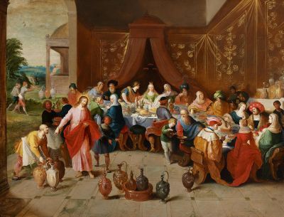 The Marriage at Cana. Remains of a signature lower left
