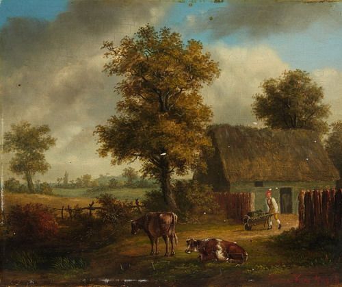 LANDSCAPE WITH FARMHOUSE AND CATTLE