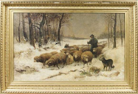 LA RENTREE DES MOUTONS DANS LA NEIGE, circa 1900.