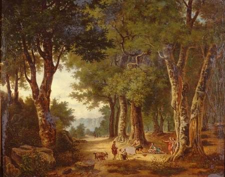 SATYRE ET PAYSANS SE REPOSANT DANS UNE CLARIERE&