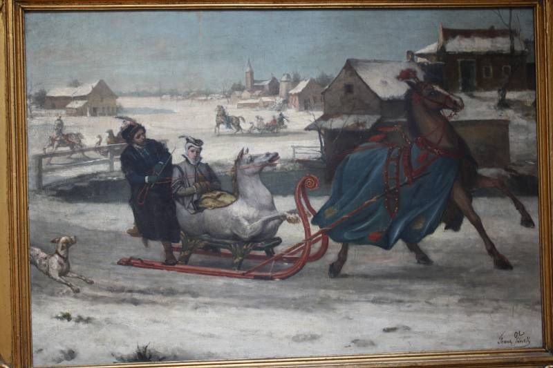 Winterscène met arreslee