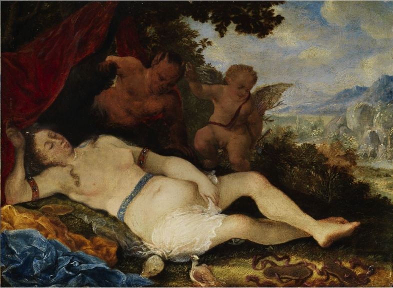SCHLAFENDE NYMPHE, VON EINEM SATYR BEOBACHTET