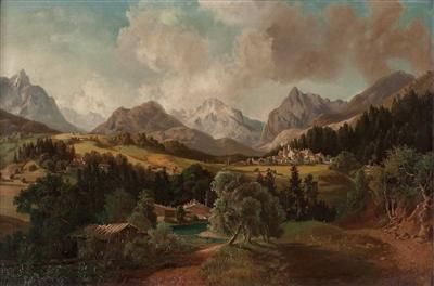 Dorf in alpiner Landschaft