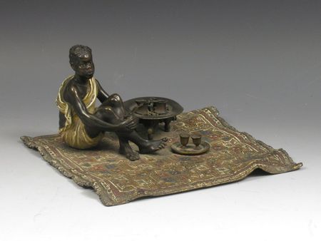 A negro seated on a rug beside a brazier
