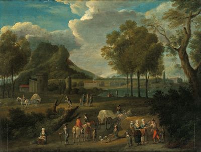 Ideal landscape with numerous figures