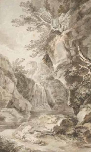 Blick auf den Sibyllentempel und die Schlucht von Tivoli.