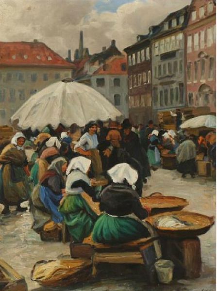 Fishermens' wifes selling fish in Copenhagen