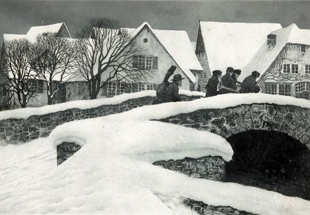 Dorfmusikanten auf verschneiter Brücke