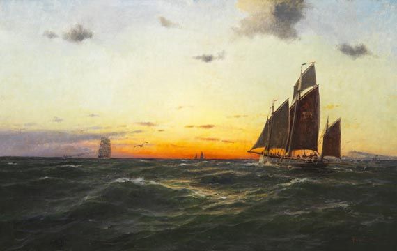 Großer Segelkutter und andere Schiffe vor Steilküste