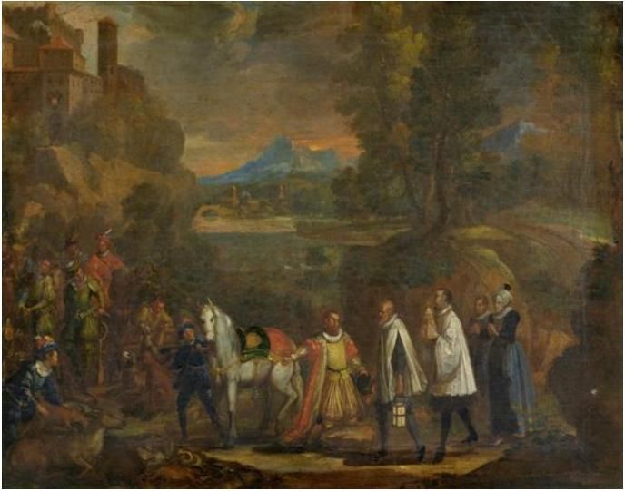 | The meeting of Rudolf of Habsburg with the priest to whom legend says he gave his horse because the priest was carrying the Holy | |