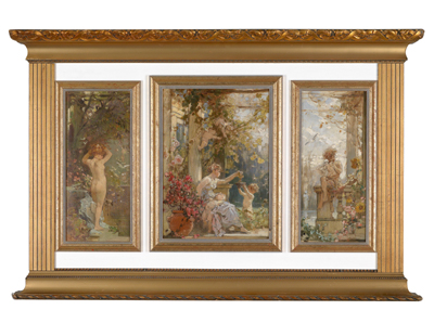 Nymph by the Spring, Putti and Nymphs, and Putto playing a Flute
