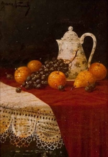 STILL LIFE WITH COFFEE POT, ORANGES AND GRAPES