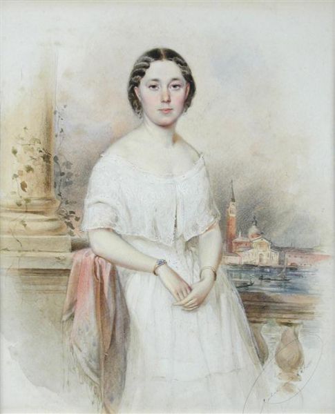 | Portrait of a Lady, seated on a balcony, with the Campanile di San Marco, and San Giorgio Maggiore, Venice, behind her | |