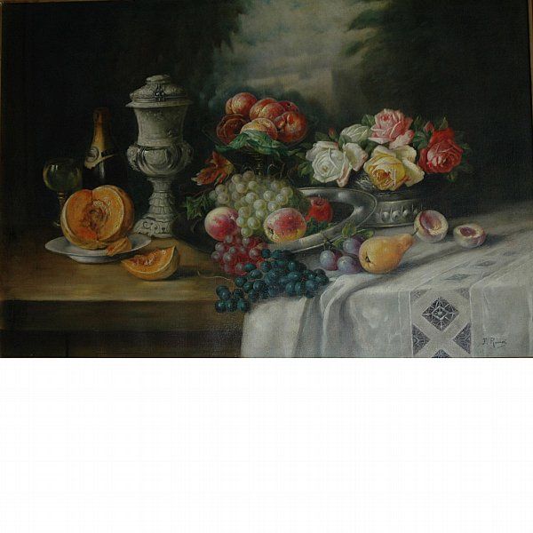 Still Life with Fruit, Roses and Champagne