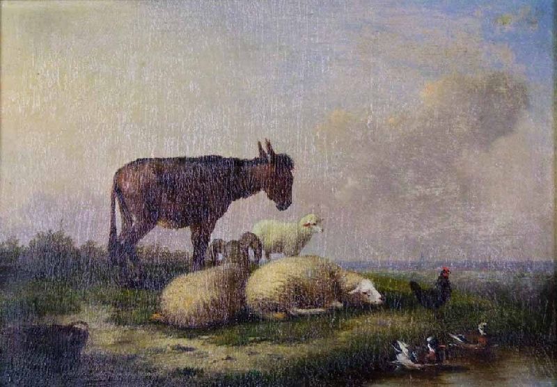 Landscape with Sheep, a Donkey, a Hen and Ducks