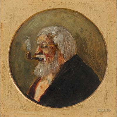In Tondo Miniaturporträt eines pfeiferauchenden bärtigen Mannes im Profil