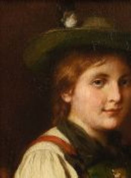 Portrait eines sitzenden Dirndls mit Blumensträußchen