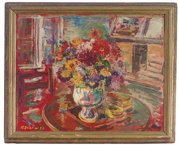 | Herbst Blumen: Still life of a vase of flowers on a table in an interior setting | |