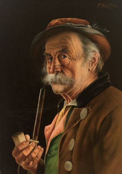Pfeife rauchender Bayer, meisterlich charakterisiert.