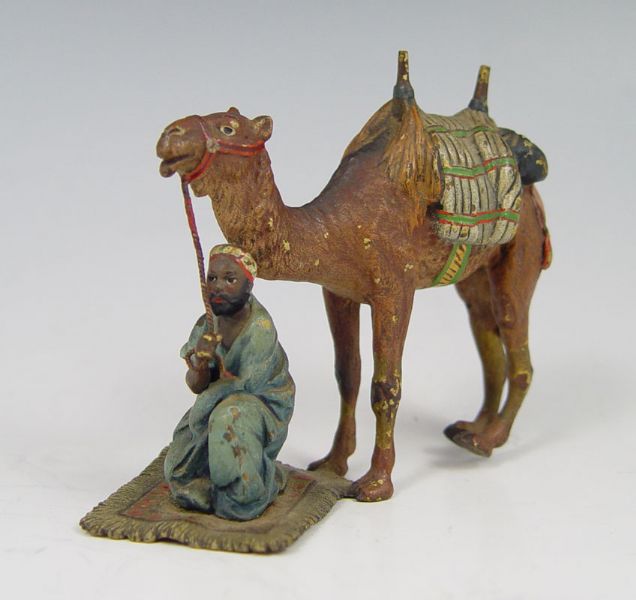 BERGMAN AUSTRIAN BRONZE ORIENTALIST FIGURE MAN WITH CAMEL:
