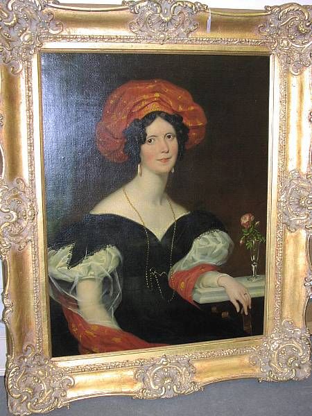 | Three-quarter length portrait of a lady seated, one arm resting on a marble ledge | |