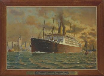 | A Mammouth Hamburg-American Liner; The Kaiserin Auguste Victoria entering in New York harbor | |