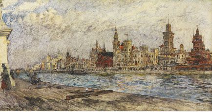 | Vue des pavillons étrangers de l'exposition universelle de Paris en 1900 | |
