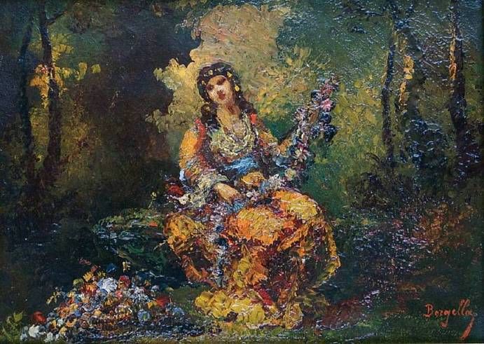 FEMME TRESSANT DES COURONNES DE FLEURS