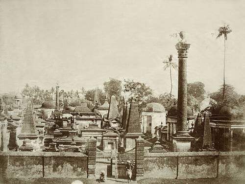 Two views of the North Park Cemetery, Calcutta, c.1850