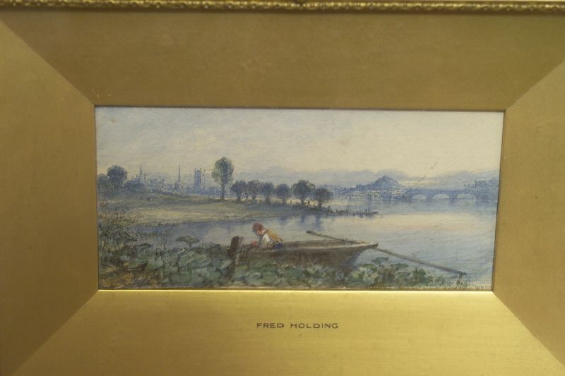 | River Scene with a Figure in a Punt, a Town and Bridge in the Distance | |