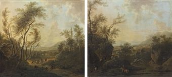 | A wooded landscape with cavalrymen being ambushed; and A wooded landscape with huntsmen and dogs on a track | |