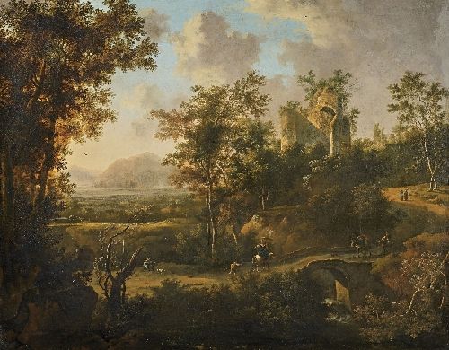 LANDSCAPE WITH RUIN, STREAM AND BRIDGE
