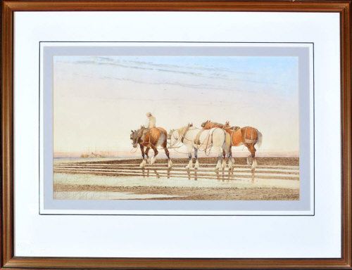 WHEN THE DAY IS DONE - A FARMER AND A TEAM OF HORSES RETURNING HOME AT EVENING