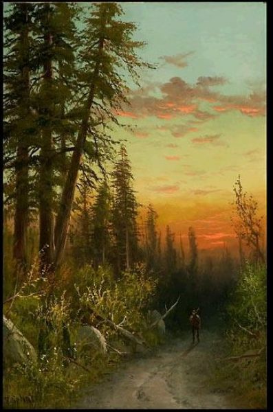 Hunter on a Path at Sunset.