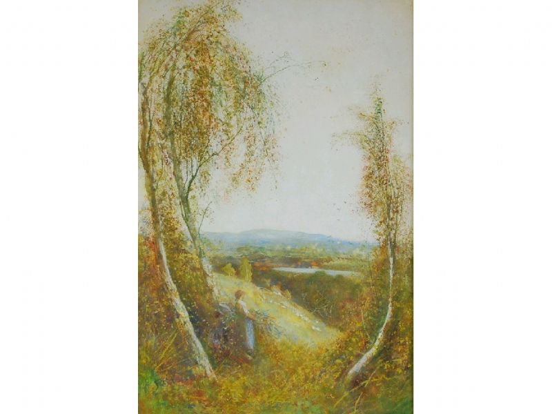 A woman gathering wood in a landscape