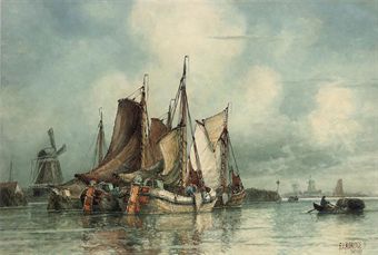 | Fishing barges drying their sails in the harbour at Dordrecht | |