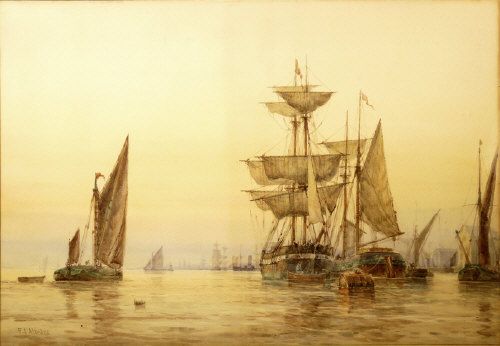 SAILING SHIPS AND BARGES IN AN ESTUARY