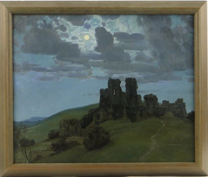 A castle ruin by moonlight