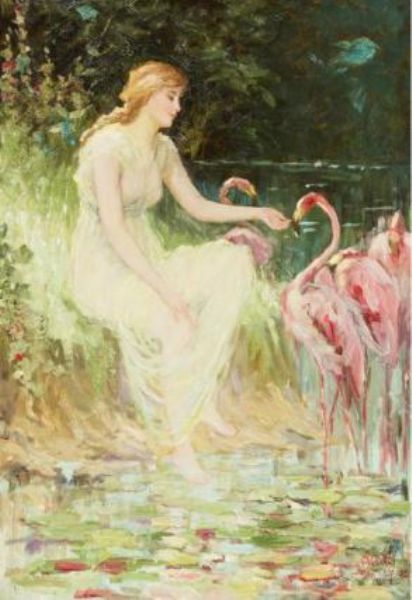 Nymph with Flamingos