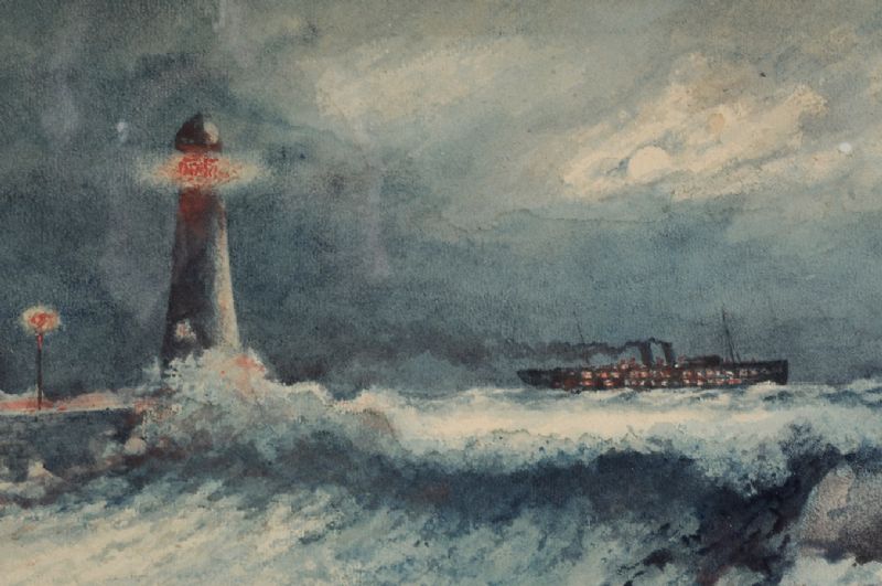 | Moonlit Lighthouse With Distant Steamer Ship | |