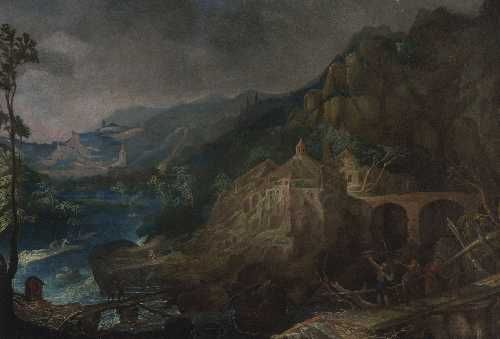 Felsige Flusslandschaft mit Figurenstaffage