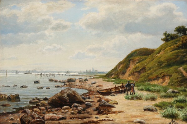 | Beach scene from Hellebæk with a view of Kronborg | |