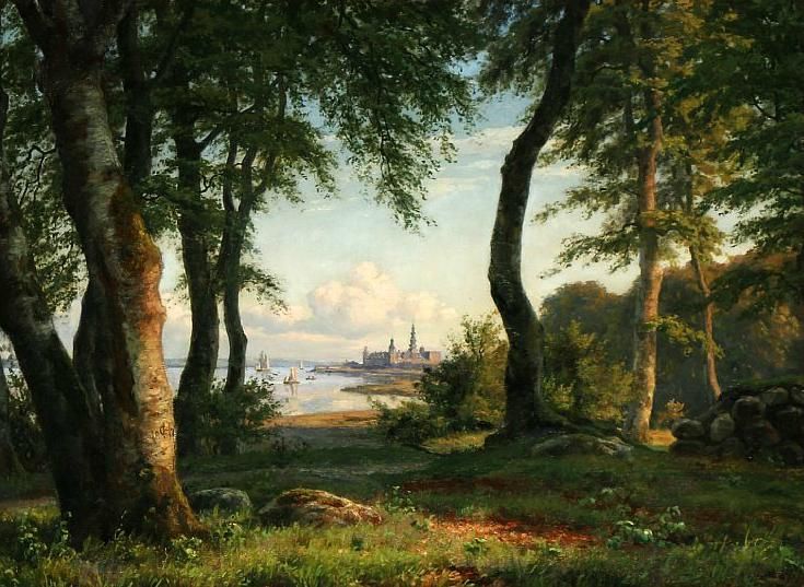 | Calm summer day with a view from a forest against Kronborg Castle | |